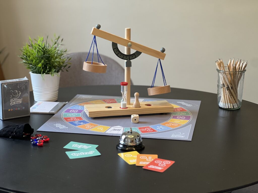 Dans une ambiance ludique, ce jeu mobilise tous les participants autour de la table, soit pour un membre de l’équipe qui souhaite “balancer son stress” (version Tous pour un), soit pour permettre à l’équipe d’ajuster son fonctionnement de manière à diminuer le stress (version Un pour tous).